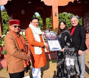 आ रहे भगवान है की रचयिता श्रीमती प्राची ने आज मुख्यमंत्री श्री पुष्कर सिंह धामी को अपनी काव्य रचना की प्रति भेंट की..
