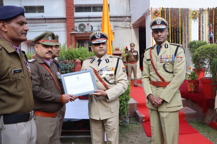 पुलिस कर्मियों को गणतंत्र दिवस 2024 के अवसर पर राज्यपाल उत्कृष्ट सेवा पदक, उत्कृष्ट सेवा सम्मान चिन्ह एवं सराहनीय सेवा सम्मान चिन्ह प्रदान कर सभी को बधाई दी
