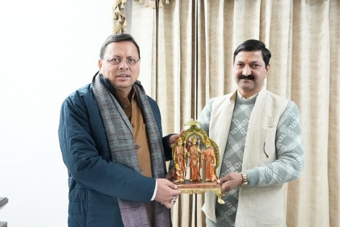 अयोध्या में आयोजित राम मंदिर के प्राण प्रतिष्ठा कार्यक्रम में भाग लेकर लौटे अजेंद्र ने आज शाम मुख्यमंत्री आवास पर मुख्यमंत्री धामी से भेंट की