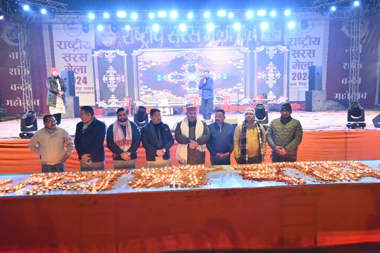 सरस मेला 2024: कार्यक्रम का शुभारंभ मंत्री गणेश जोशी ने दीयों से लिखा गया जय श्री राम के दीप जलाकर कार्यक्रम का शुभारंभ किया। कार्यक्रम में कई सांस्कृतिक प्रस्तुतियां दी गई