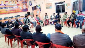 बैठक में वरिष्ठ उपाध्यक्ष राजेंद्र ढिल्लों संध्या थापा संतोष सेमवाल बबीता सहोत्रा रतन सिंह चौहान महानगर महामंत्री विजेंद्र थपलियाल सुरेंद्र राणा महानगर मंत्री देवेंद्र पाल मोंटी गोविंद मोहन विमल उनियाल कार्यालय प्रभारी विनोद शर्मा प्रदीप कुमार अक्षत जैन शकुल उनियाल मोर्चा अध्यक्ष राकेश आर्य बलदेव नेगी यासमीन आलम खान मंडल अध्यक्ष राहुल लारा विनोद पुंडीर अंजू बिष्ट प्रकाश मोतीराम आदि कार्यकर्ता उपस्थित रहे