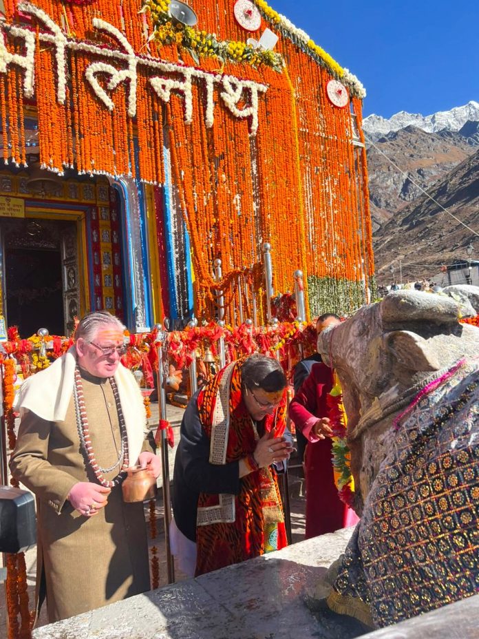 श्री केदारनाथ धाम के कपाट शीतकाल के लिए बंद होने से पूर्व शुक्रवार को मुख्यमंत्री श्री पुष्कर सिंह धामी ने बाबा केदार के पावन दर्शन किए और समस्त प्रदेशवासियों के लिए सुख-समृद्धि एवं खुशहाली की कामना की। इस अवसर पर मुख्यमंत्री ने मंदिर परिसर में उपस्थित साधु-संतों, श्रद्धालुओं एवं स्थानीय निवासियों से भी भेंट की। द्वादश ज्योतिर्लिंगों में से एक श्री केदारनाथ धाम के कपाट शनिवार को शीतकाल के लिए बंद हो रहे हैं।