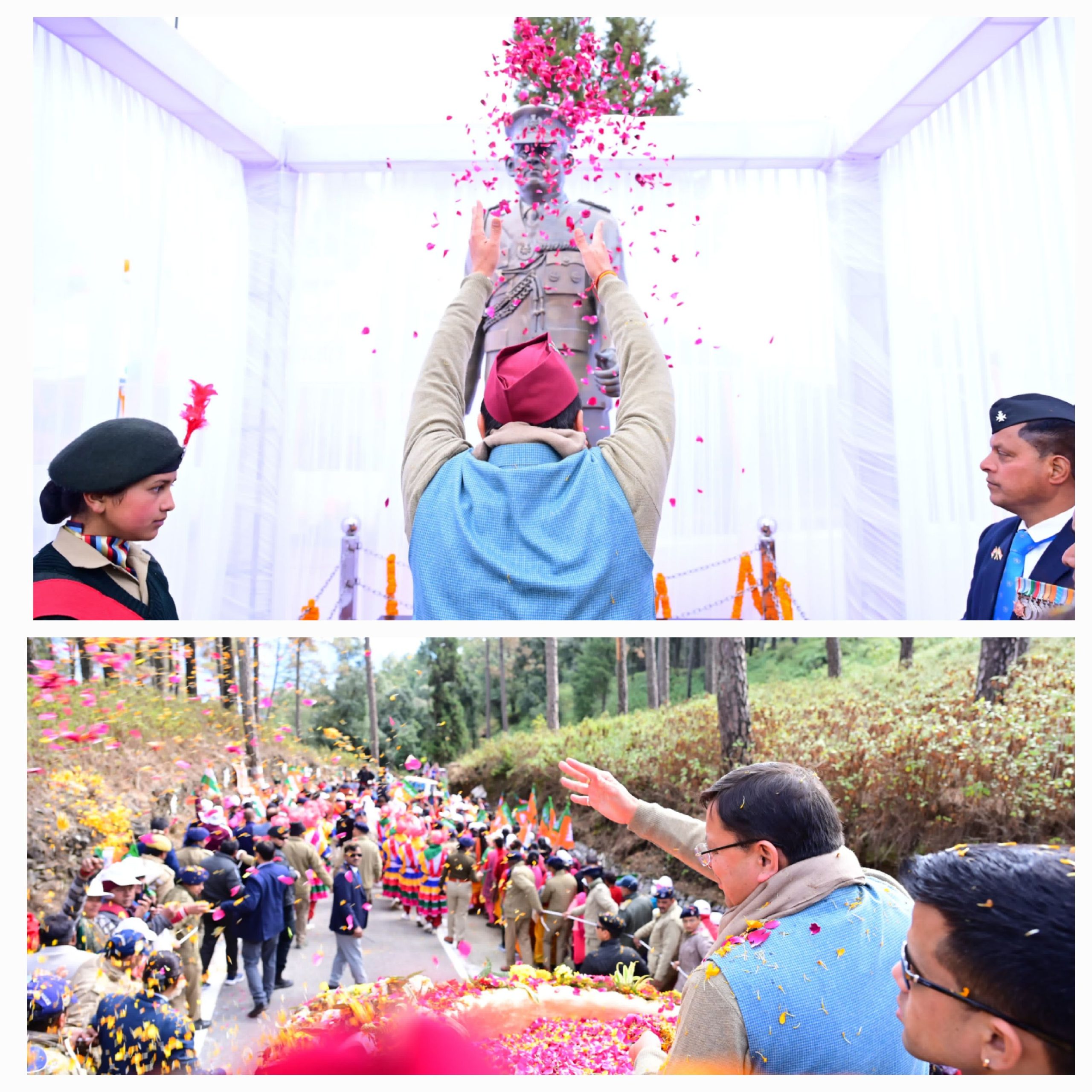 धामी जी ने रांसी स्टेडियम में शहीद जसवंत सिंह रावत जी की मूर्ति का किया अनावरण