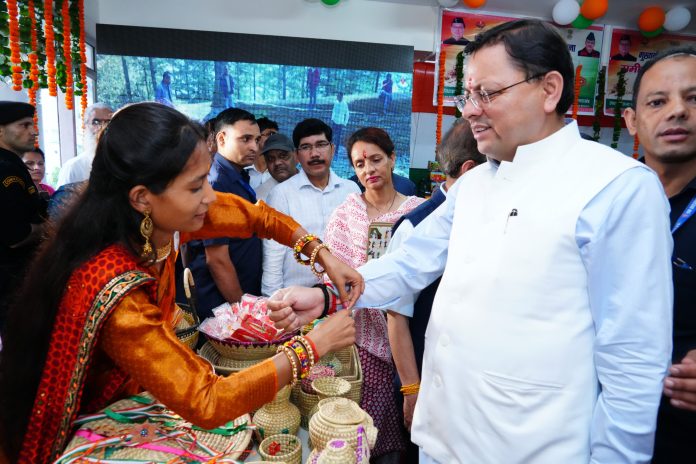 मुख्यमंत्री श्री पुष्कर सिंह धामी ने सोमवार को सचिवालय परिसर में मुख्यमंत्री सशक्त बहना उत्सव योजना’ अन्तर्गत राज्य स्तरीय कार्यक्रम का समस्त 95 विकासखंडो में शुभारम्भ एवं महिला स्वयं सहायता समूहों द्वारा रक्षाबन्धन पर्व हेतु लगाये गये स्टॉलों का अवलोकन किया |