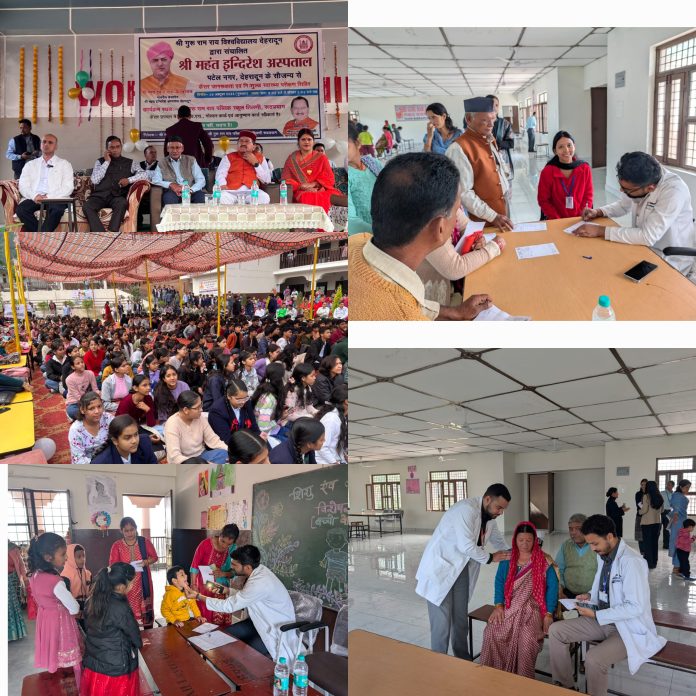 देहरादून। श्री गुरु राम राय विश्वविद्यालय एवम् श्री महंत इन्दिरेश अस्पताल, देहरादून के सौजन्य से श्री गुरु राम राय पब्लिक स्कूल, तिलणी, रुद्रप्रयाग में गुरुवार, 30 अक्टूबर 2025 को कैंसर जागरूकता एवं निःशुल्क स्वास्थ्य परीक्षण शिविर का सफल आयोजन किया गया। इस अवसर पर 2100 से अधिक मरीजों ने शिविर का लाभ उठाया। शिविर में अस्पताल के विशेषज्ञ चिकित्सकों ने स्वास्थ्य परामर्श दिया तथा रोगियों को निःशुल्क दवाइयाँ वितरित की गईं।