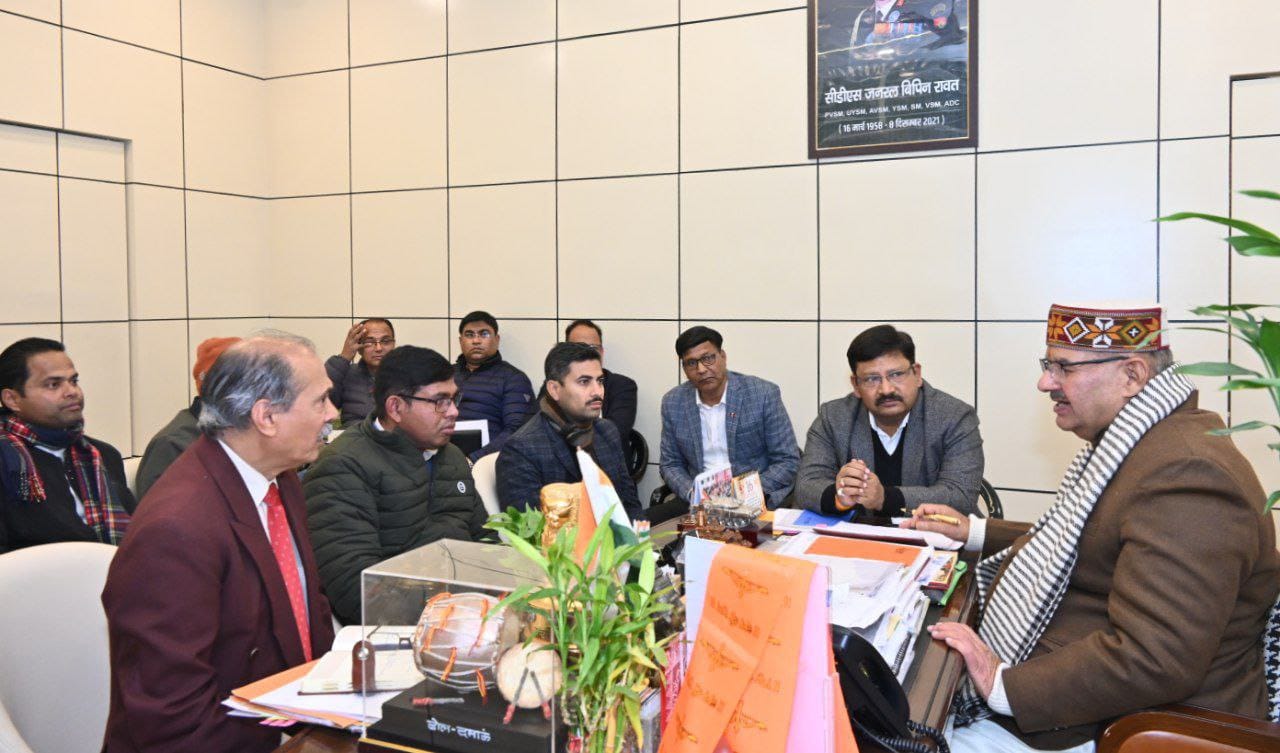 सैनिक कल्याण मंत्री गणेश जोशी ने सैन्य धाम के निर्माण कार्यों की प्रगति की जानकारी ली। विभागीय मंत्री गणेश जोशी ने निर्माण से संबंधित अधिकारियों को आवश्यक दिशा निर्देश दिए