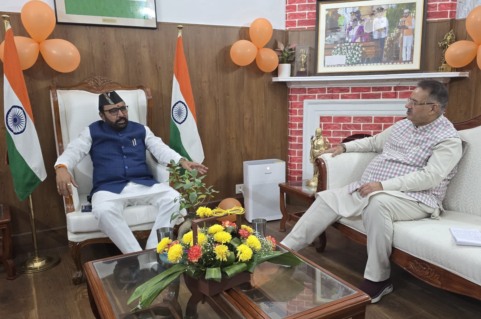 इस अवसर पर उन्होंने कई समसामयिक विषयों पर विस्तार से चर्चा की और उन्हें पहाड़ी टोपी भेंट कर उत्तराखण्ड आने का निमंत्रण भी दिया।