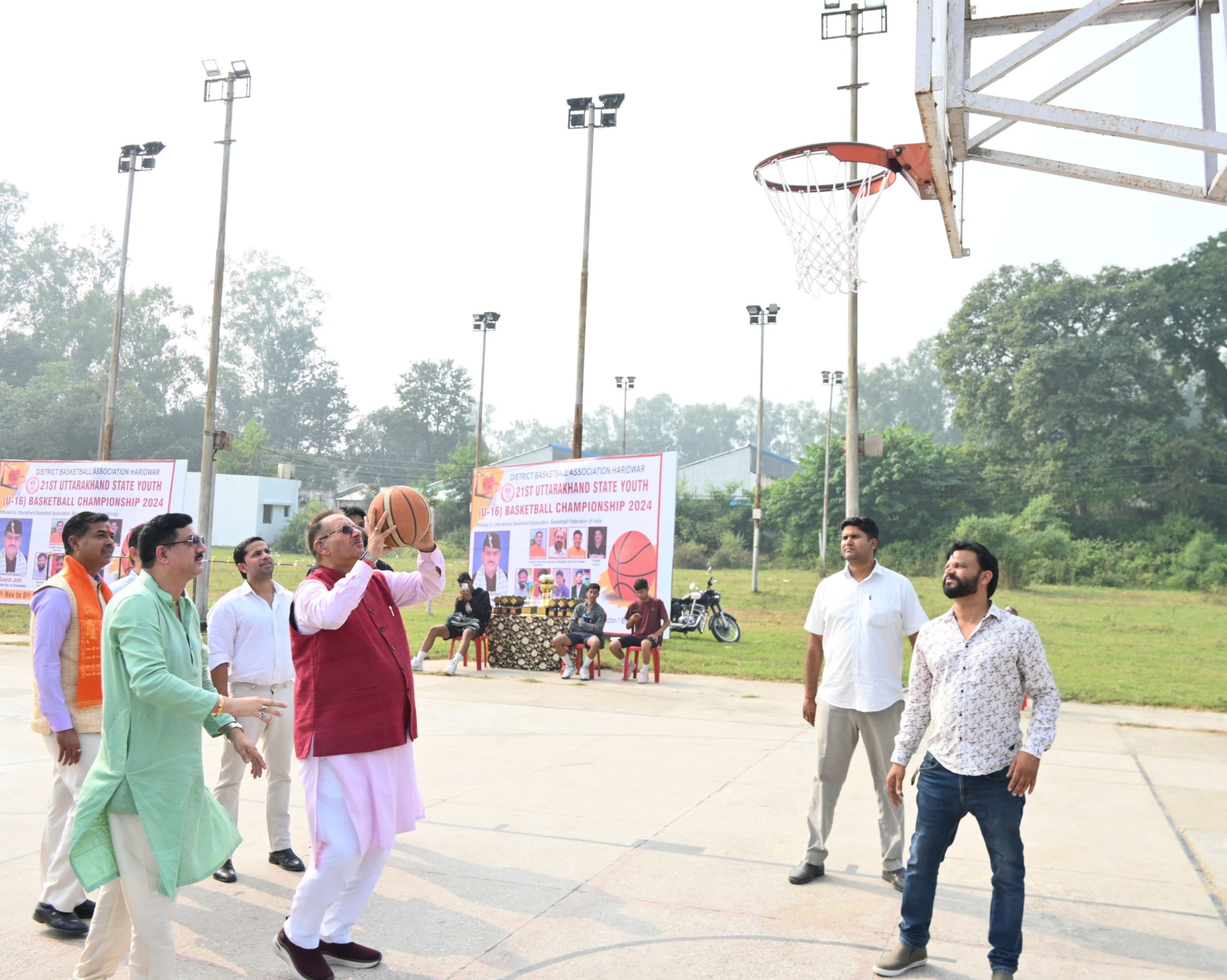 हरिद्वार, 08 नवम्बर। कैबिनेट मंत्री गणेश जोशी ने आज शुक्रवार को रामलीला मैदान बी.एच.ई.एल. हरिद्वार में आयोजित 21वीं यूथ स्टेट अंडर-16 बास्केट बॉल बालक बालिका प्रतियोगिता के समापन कार्यक्रम में बतौर मुख्य अतिथि के रूप में प्रतिभाग किया। कार्यक्रम का शुभारंभ कैबिनेट मंत्री गणेश जोशी ने खिलाड़ियों से उनका परिचय प्राप्त कर किया और उनका उत्साहवर्धन किया।।