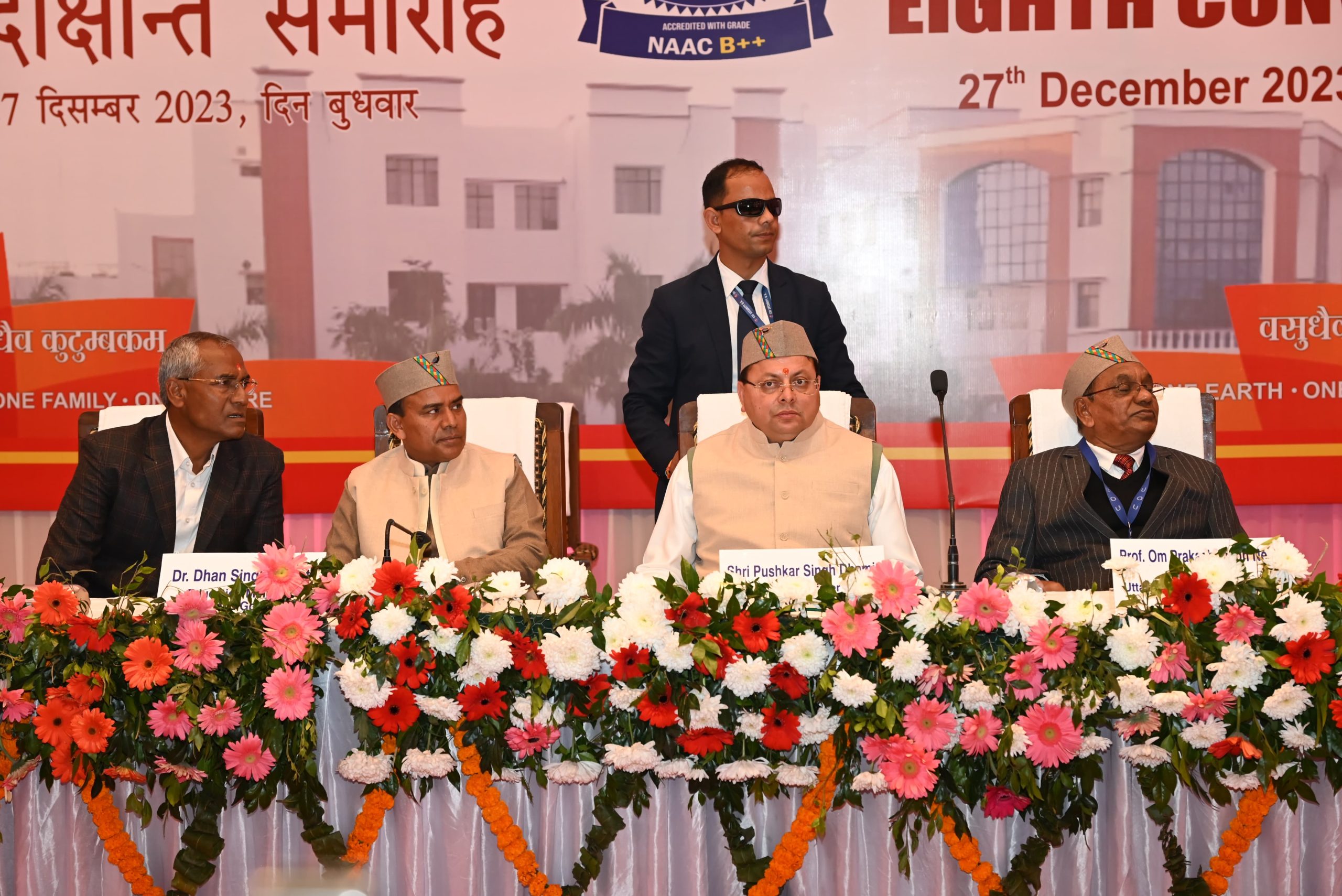 धामी ने छात्र-छात्राओं व शिक्षकों को बधाई दी और उनके उज्जवल भविष्य की कामना कर कहा उच्च शिक्षा उत्तराखंड में एक सेतु का काम कर रही है