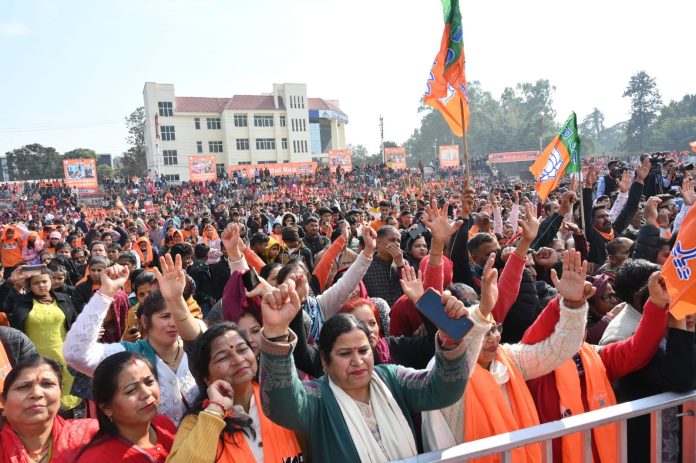 भाजयुमो की राष्ट्रीय उपाध्यक्ष नेहा जोशी ने यहां उपस्थित लगभग 25 हजार से अधिक के जनसमूह को सम्बोधित करते हुए कहा कि प्रधानमंत्री नरेंद्र मोदी ने पिछले 10 साल में अभूतपूर्व काम किए हैं, उन्होंने हमें कई तरह की गारंटी दी हैं। पीएम ने महसूस करवाया है कि आप सुरक्षित हैं, केवल बाहरी ताकतों से ही नही बल्कि आंतरिक रूप से अगर कोई भी संकट आएगा तो मोदी आपके साथ खड़ा रहेगा। हम सब कहते हैं मोदी है ना। आज 50 करोड़ जनधन खाते खुले हैं क्योंकि मोदी है ना। 10 करोड़ से अधिक महिलाओं को उज्ज्वला गैस के कनेक्शन मिले हैं क्योंकि मोदी है ना। आज देहरादून से दिल्ली की दूरी 2 से 3 घंटे होने जा रही है क्योंकि मोदी है ना। आज भारत चांद पर पहुंच गया है क्योंकि मोदी है ना। आज जिस तरह से प्रधानमंत्री मोदी जी ने हमें पिछले 10 सालों में गारंटी दी है सुरक्षा दी है, आज मुख्यमंत्री जी, राष्ट्रीय अध्यक्ष तेजस्वी सूर्या जी और प्रदेश अध्यक्ष महेंद्र भट्ट जी के नेतृत्व में उत्तराखंड का युवा मोदी जी को गारंटी देने की शुरुआत कर रहा है कि हम आपके साथ फौलाद की तरह खड़े हैं। हम आपके साथ 2014, 2017, 2019, 2022 में पिछले 10 सालों से मोदी जी के साथ खड़े हैं और 2024 में भी पांच में से पांच लोकसभा सीट आगे देकर कहेंगे, मोदी है ना।