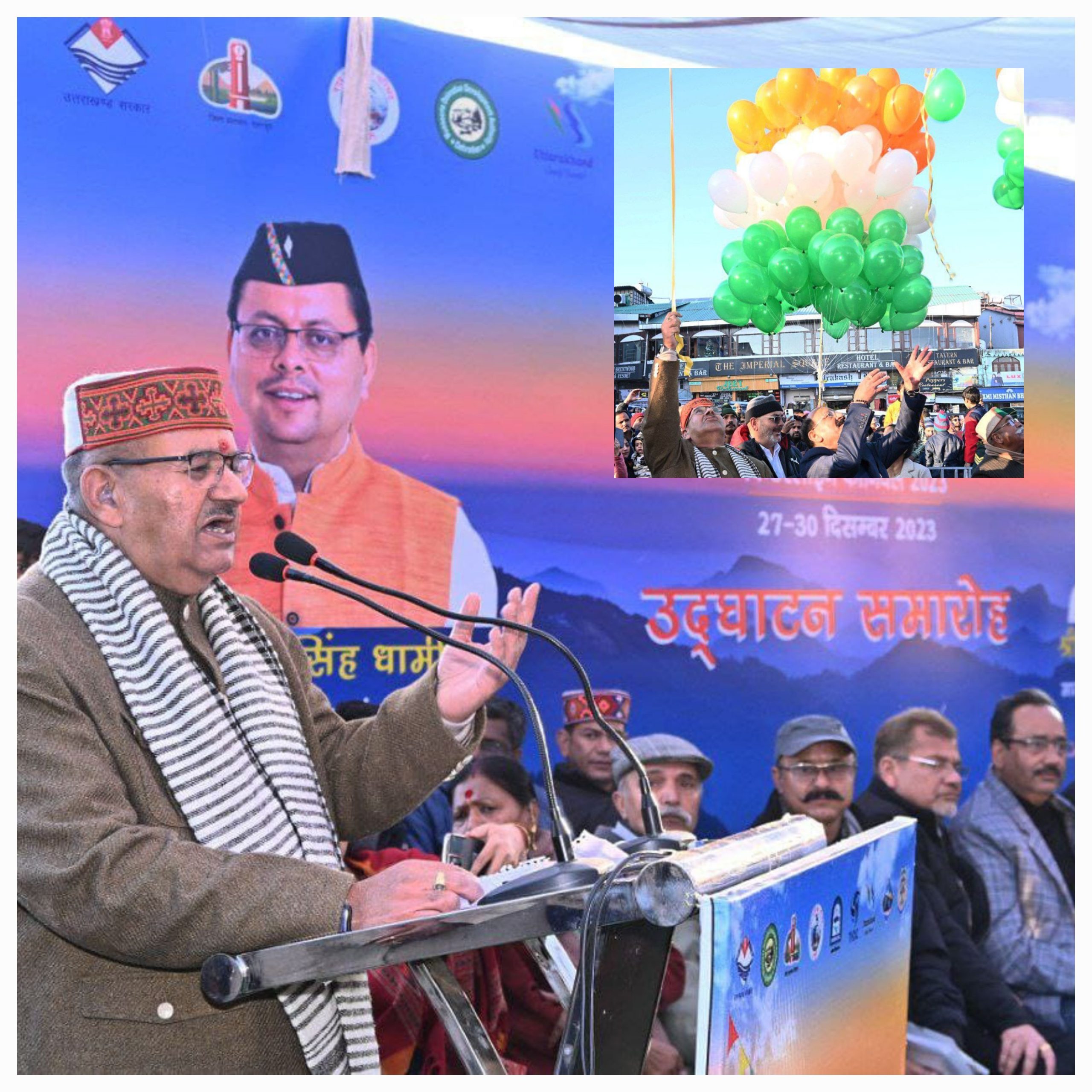 केबिनेट मंत्री गणेश जोशी ने फ्लैग ऑफ एवम् हवा में गुब्बारे उड़ाकर विधिवत् शुभारम्भ किया गया (मसूरी मे ‘विन्टरलाईन कार्निवाल-)