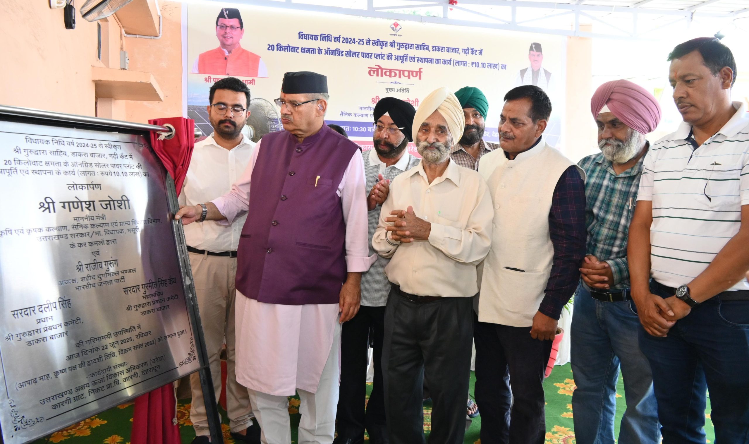 उद्घाटन के बाद अपने सम्बोधन में कैबिनेट मंत्री गणेश जोशी ने कहा कि पिछले वर्ष 14 जनवरी 2024 को मकर संक्रांति के पावन अवसर पर जब मैंने आप सबके बीच यह घोषणा की थी कि गुरुद्वारा साहिब परिसर में 20 किलोवाट क्षमता का सौर ऊर्जा संयंत्र स्थापित किया जाएगा, तब वह सिर्फ एक घोषणा नहीं थी, वह एक प्रतिबद्धता थी, एक वादा था। उन्होंने कहा कि करीब 10 लाख 10 हजार की लागत से 20 किलोवाट क्षमता वाला यह सौर पावर प्लांट अब पूरी तरह स्थापित हो चुका है। इससे प्रतिदिन 100 यूनिट और महीने में लगभग 3000 यूनिट बिजली का उत्पादन होगा। अब गुरुद्वारा साहिब बिजली के क्षेत्र में पूरी तरह आत्मनिर्भर हो गया है। अपनी बिजली खुद बनाएगा, और अपनी बनाई बिजली खुद उपयोग करेगा।
