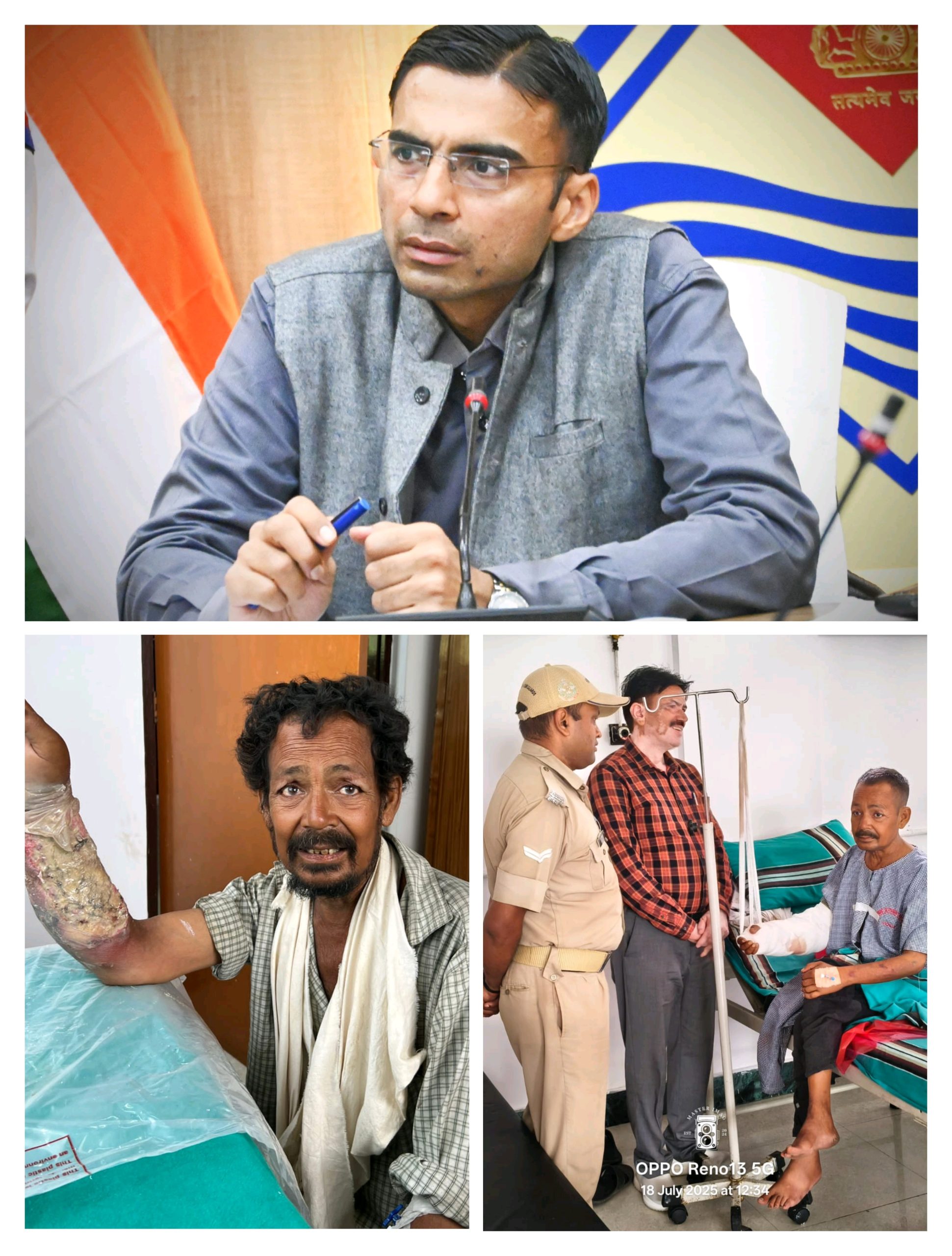 विगत दिवस कलेक्टेªट परिसर में असहाय राजू पंहुचा जिसका एक हाथ बुरी तरह से जला हुआ था। राजू ने जिलाधिकारी को अपनी पीड़ा सुनाते हुए बताया कि वह होटल में मजदूरी कराता है तथा चमोली में उसका गर्म पानी से जल गया, दून अस्पताल ने हायर सेंटर को रेफर कर दिया है, उसके पास उपचार के लिए पैसे नही है। जिस पर जिलाधिकारी संविन बसंल ने बर्न स्पेशलिस्ट निजी चिकित्सालय से दूरभाष पर वार्ता करते हुए राजू के उपचार का अनुरोध किया जिस हेल्पिंग हेंड हॉस्पिटल के डॉ कुश ने राजू को तत्काल हास्पिटल भेजने को कहा। जिला प्रशासन ने सारथी वाहन से राजू को चिकित्सालय में भर्ती कराया।